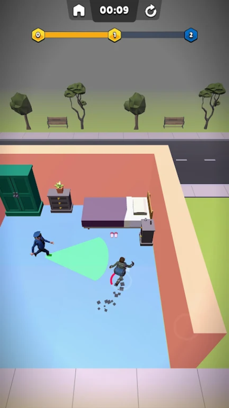 一定要小心!玩家可能在一些人家里遇到意料之外的客人,如果他们撞见你就会报警,这种情况下,先躲起来,等到他们不找你了再出来,或者把偷的东西留下,溜之大吉。