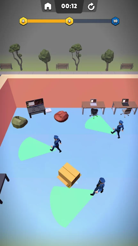 游戏的一大亮点是盒子隐藏机制。当你意识到警卫即将路过时,可以快速找到一个盒子躲藏起来。这个机制不仅增加了游戏的紧张感,还培养了你的反应能力和判断力。通过观察和时机掌控,你能够创造出意想不到的逃生方案,有效避免被抓住的风险。