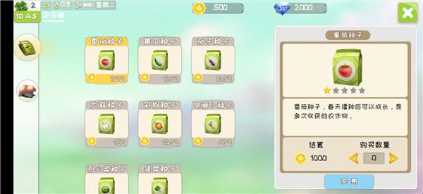 2、自由耕种拥有超大的初始耕地面积,可以自由的选择开垦地块的位置和区域。不同的季节会有不同的农作物种子可以选择,注意应季种植。