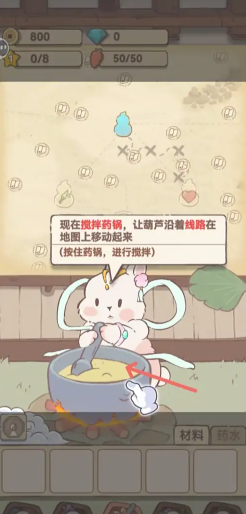 2、新手教程学习完成后,进入制药页面,拖动药草到药锅里。