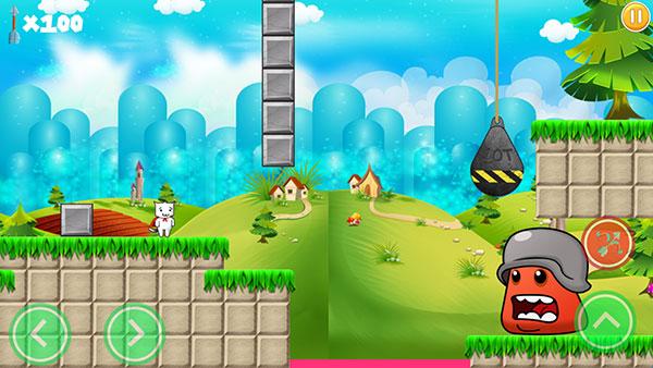 3、游戏的难度实在是高到让人发疯,游戏中有很多让人意想不到的陷阱,比如跳跃壕沟的时候头顶上会莫名其妙的多出一个砖块而让你掉进壕沟、好好的地面突然会塌陷下去、眼看过关了又有个不明飞行物将你砸死。