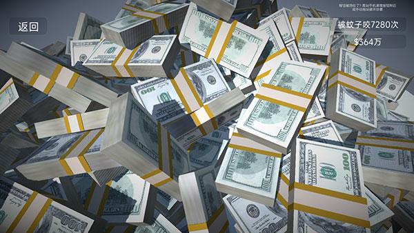 4、继续点击红色按钮,甚至还会继续掉落成捆的钞票,直到屏幕被装满,挡住按钮。