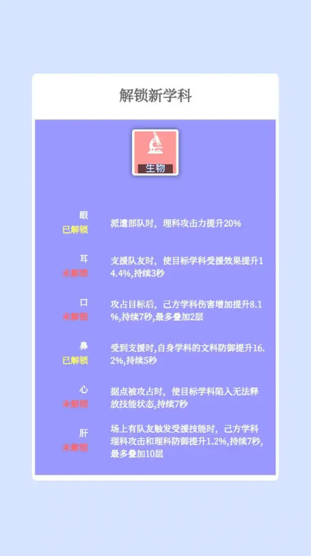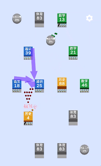 学科争夺战是一款非常受欢迎的策略小游戏,进入游戏后选择合适的阵营,将语数外、政史地学科融入策略游戏中,根据每一位学科其攻击属性制定完美的作战策略,同时观察场上作战情况及时调整,强化升级,完成最后的猛攻即可顺利拿下体育课啦!游戏题材新颖有趣,感兴趣的小伙伴们快来下载体验吧!