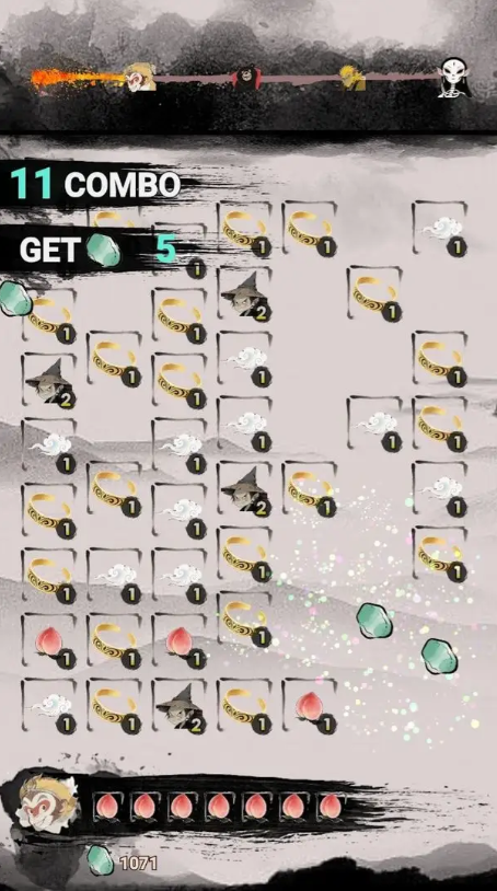 1、玩家通过消除符号来触发技能和法术,体验策略与趣味的完美结合。精美水墨风美术,视觉享受游戏采用水墨风手绘场景,每一帧画面都充满东方美感。