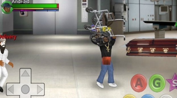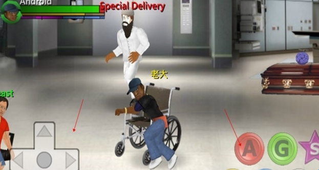 然后就可以进入战斗中的,游戏操作很简单,左侧控制玩家移动,右侧使用攻击和抓取之类的