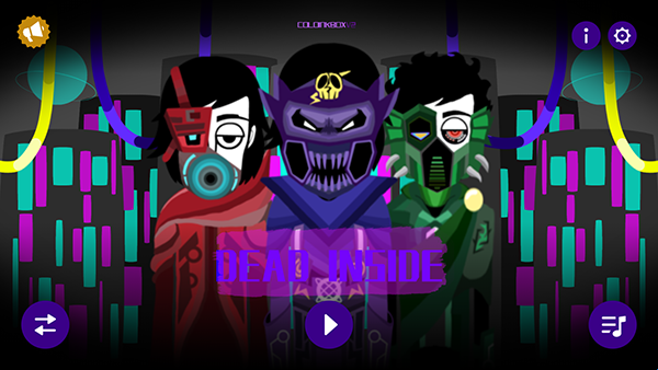 节奏盒子deadi nside是由喜欢节奏盒子系列游戏的玩家们自制的全新模型音乐节奏游戏,游戏将各种潮流电子音乐主题和节拍收录其中,玩家可以通过拖拽其中的节奏小人来创作独特的音乐,角色不同的动作也代表了自己独特的属性,你可以按照自己的喜好进行不同的组合搭配,会产生意想不到的效果,还可以解锁全新的地图玩法哟。