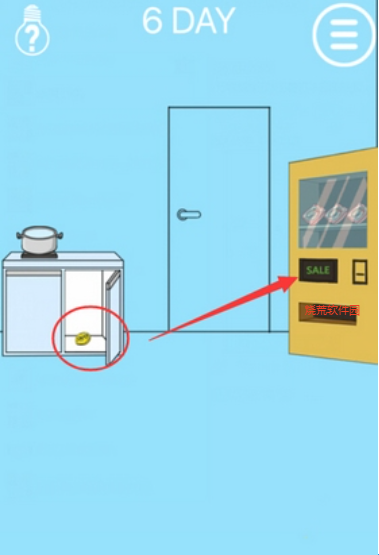 打开左边柜子拿到硬币,将硬币放入右边的自动贩卖机中即可获得泡面。