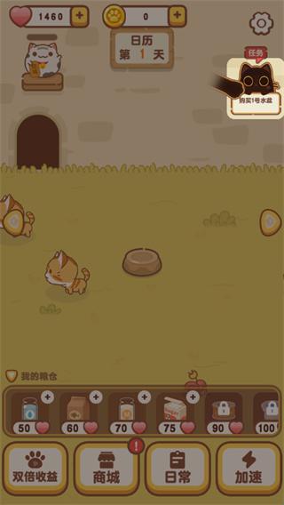 1.双击打开我的萌猫游戏,开始游戏前玩家需要点击商场来购买碗喂食猫咪;