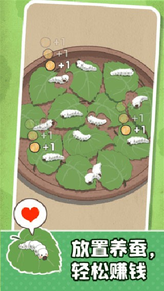1、轻松治愈系的游戏主题,简单放置趣味养蚕。