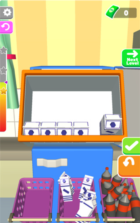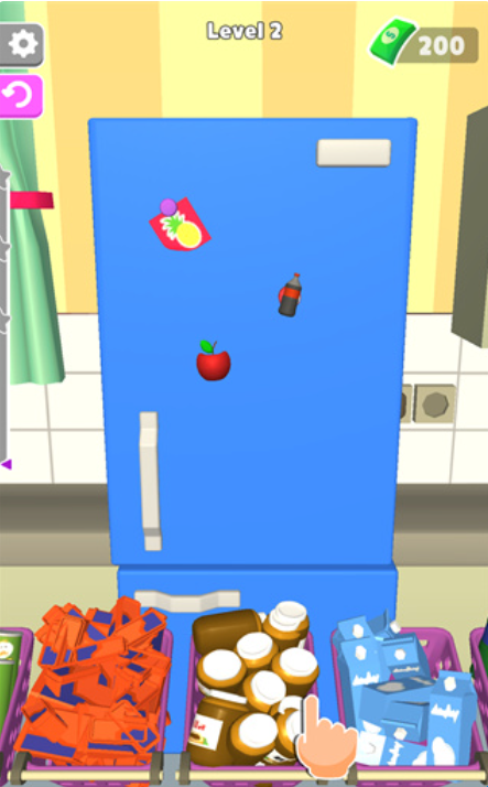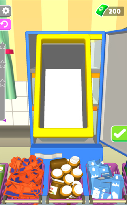 2、每个关卡中都会要求把不同类型的物品放进冰箱,但是需要空间想象能力去进行合理的放置;