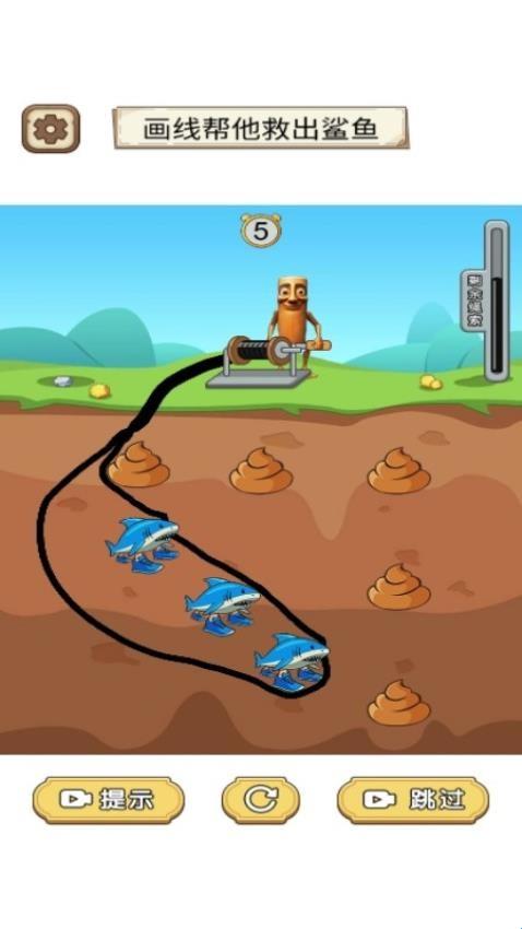1、需借助智慧与创造力,以自由画线的形式解救被困的角色。