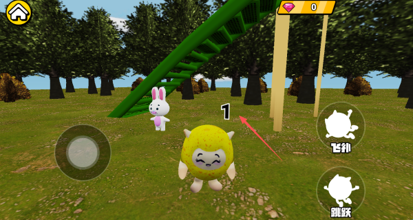2、点击左侧的按钮可以控制着角色移动,带来这里向下就可以滑滑梯了。