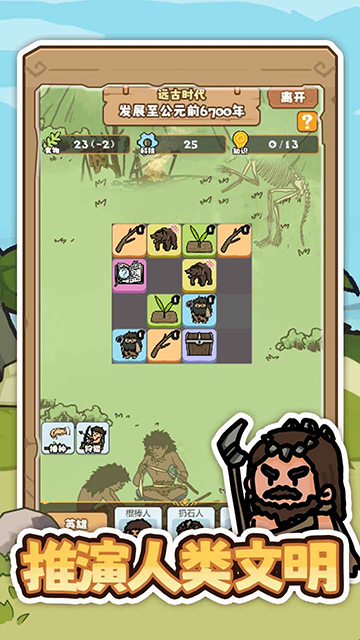 文明推演是一款通过合成方块来推演历史进程的休闲模拟小游戏,故事中的历史发展十分有趣,玩家们可以自由选择不同的场景地图进行发展,多种人类文明的相关知识和发展方向都可以在这里看到,很多有趣的知识问答可以帮助你获取丰厚的游戏奖励,利用这些奖励和工具,可以帮助你掌握文明发展的方向,创阿金属于自己的美好世界。
