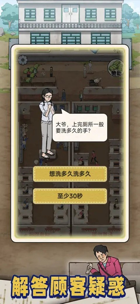 蹲坑大师的剧情设定和玩法内容十分具有创意,以厕所经营为主题玩法,玩家需要通过管理厕所以及解决一系列突发事件来打造一个理想的厕所,每一位顾客的剧情设定和需要解决的难题都是不同的,还有很多幽默搞笑的突发事件随时在发生,非常考验玩家们的应变能力,你可以利用游戏提供的各种道具进行设施升级,也可以学习其他玩家的经验,看看谁经营的厕所更受欢迎。