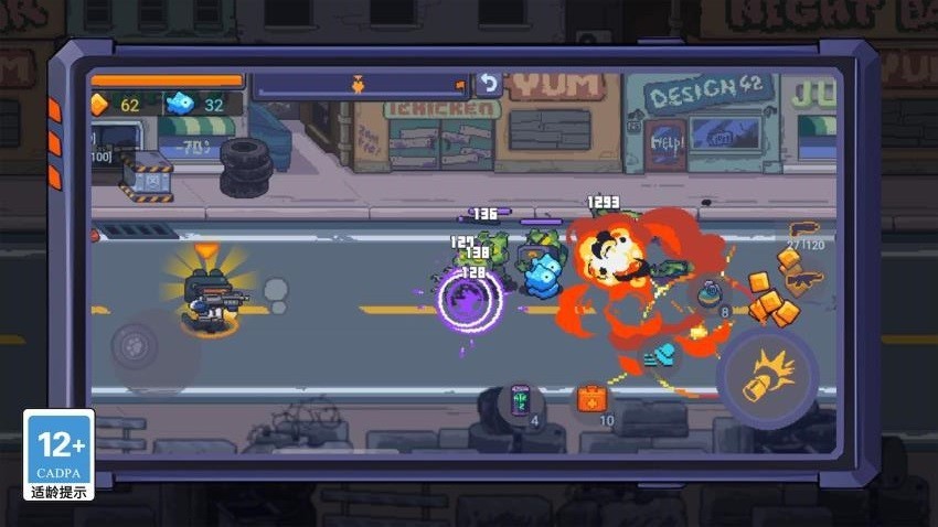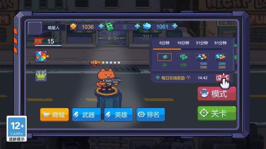 1、怀旧像素风设计,独特的僵尸造型和猫咪角色,紧张刺激的游戏环境,华丽炫酷的道具物品。