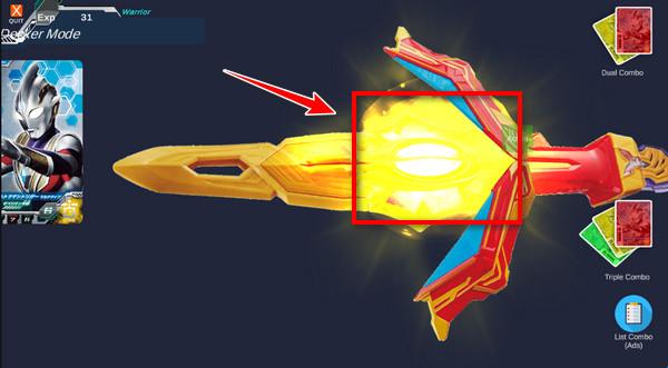 8、点击奥特双重剑中部,从特利迦模式切换到德凯模式!