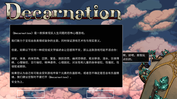 2、在现实世界中作战皆有限制,但潜意识中的景象却避无可避,《Decarnation》这款层次分明的心理冒险生存故事,探讨了二者之间的差异。