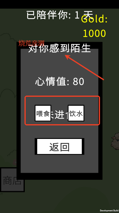 5、如图,显示对你感到陌生可以选择“喂食”、“饮水”