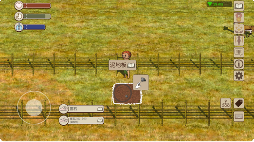 2、然后再找寻一个锋利岩石,把树枝砍成木柴,加入燃起的小树枝,生成火堆。