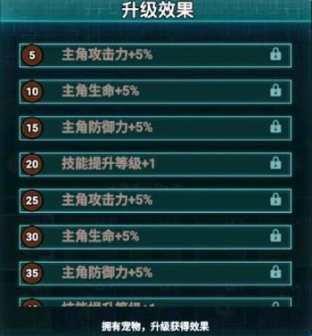 5、每个宠物都有升级效果,升级效果每5级为一个阈值提供的,可以给主角提供永久的属性加成,即使宠物不上阵也是生效的(推荐每个宠物都按5/10/15这样的阈值来进行升级,这样可以均分材料)。