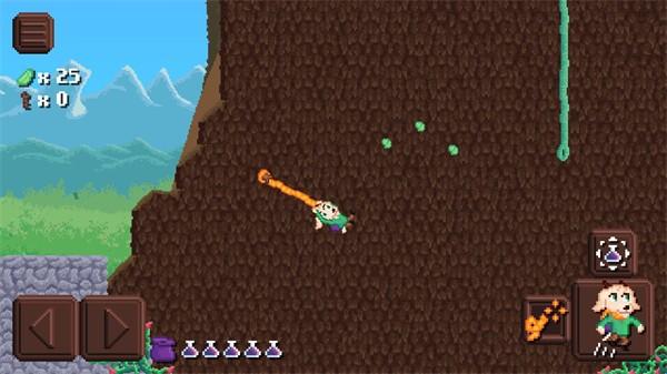 3、游戏左边控制角色的前进,右边是跳跃、使用绳索和投出药瓶的按钮。