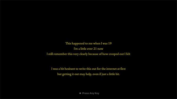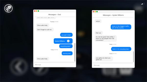 你将扮演霍莉.加德纳,一位逛完游戏展、正在开车回家的19岁少女。由于交通异常拥挤,她决定绕远路以避开堵塞路段,最终却不得不下榻于一家汽车旅馆。对于诺伍德山谷中正在发生的事,她似乎毫不知情。在做出一系列正确选择后,她活了下来。