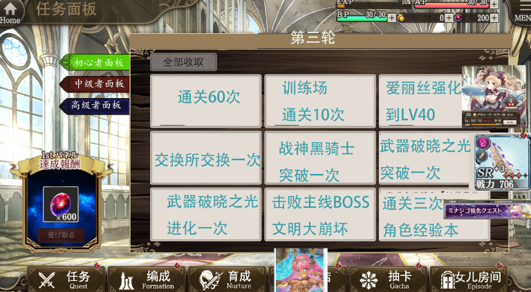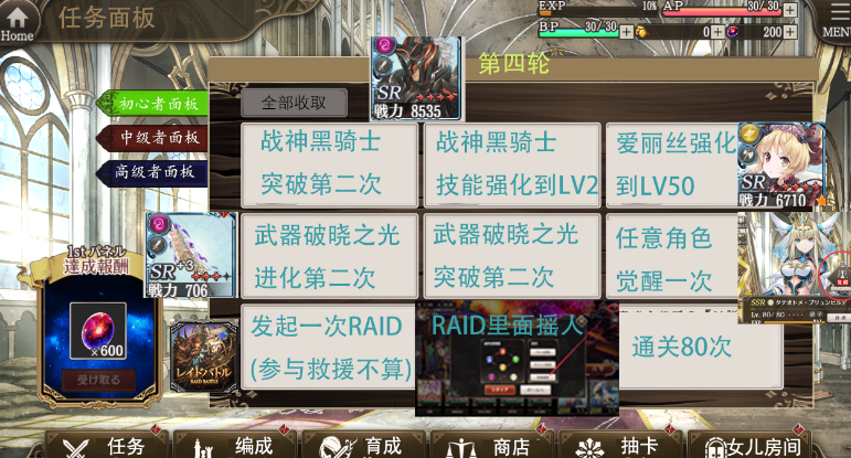 比较容易养的是黑骑士、爱丽丝和零式。黑骑士和爱丽丝可以在左上角的教程任务迅速满破,零式在主线交换所用铜币兑换。