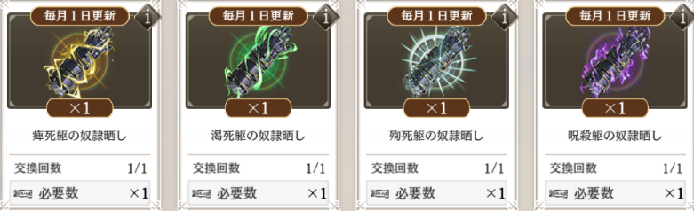 下图是主线的交换所,EX难度掉落金币,H难度掉落银币,N难度掉落铜币。