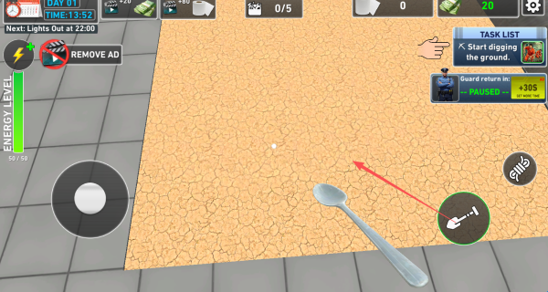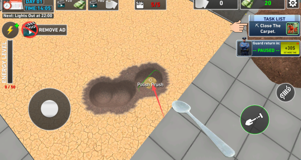 4、但要小心!狱警会定期检查你的牢房。如果他们发现挖掘的迹象,惩罚就在等着你。