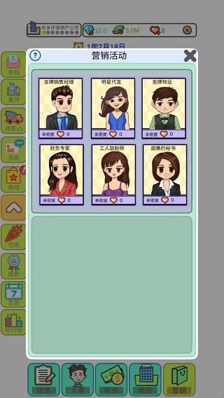 调整好之后,开始动工,然后在营销里面,点击秘书及鼓励师,确保2次以上的建造速度×4。在房子快建造的时候,招2个专家级销售(利用钻石解锁销售空位),再从营销里面观看3次以上的金牌销售,这样可以确保资金快速回笼(注意:当钻石足够时多解锁建造师及销售员空位,可提高建造速度及销售速度)这样基本上就开始赚钱了!