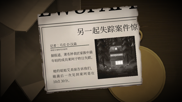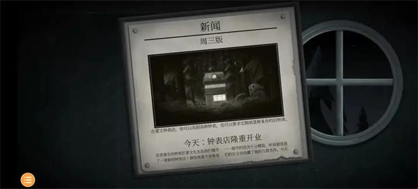 10、玩家一和玩家二都可以看见收音机,调频,相互沟通,先是玩家一后为玩家二,得知线索。玩家一:得知现在是三月。玩家二:得知雷文钟表店今天也就是18号,开业。向上滑动,看见报纸,得知今天是周三。