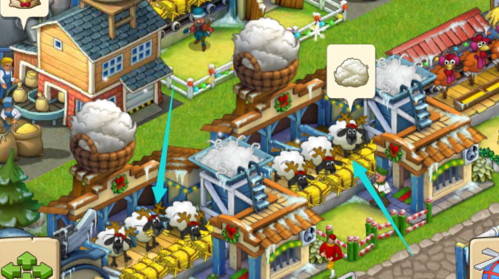 看到下面有羊毛飘在上面的就是牧羊场了。飘着羊毛说明羊毛已经成熟可以收割了。点击进入。