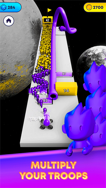 3.更高难度的关卡中会出现不同的障碍,更考验你的敏捷操作,以便足够的士兵共同闯关。