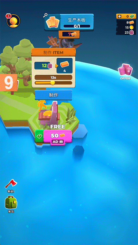 2、将获取的资源丢在空余的地方即可制造出一片新的土地,这样就有更多的木材可以砍了。
