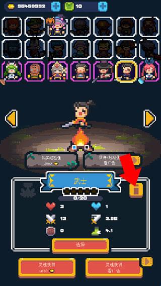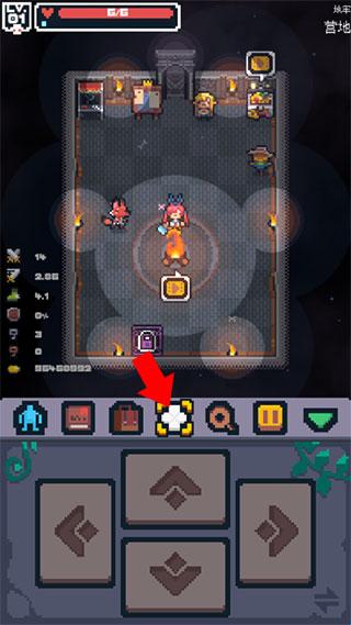 2、想要切换角色时,移动至篝火处,再次点击朝向篝火的方向键即可进入角色选择和强化界面