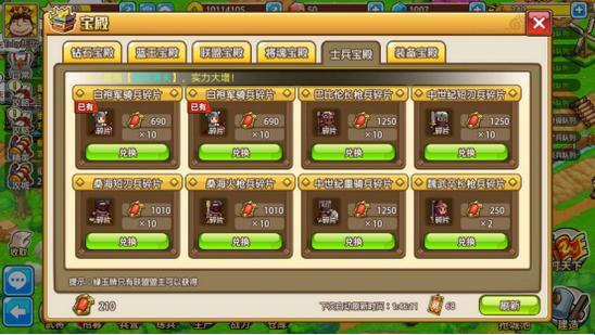 3、升星需要消耗金币,红玉牌或对应的兵种碎片。多数情况下都是通过红玉牌去士兵宝殿中兑换兵种碎片(三十五级解锁),直接点击蓝色小加号就能直接跳转,是不是非常贴心呢~