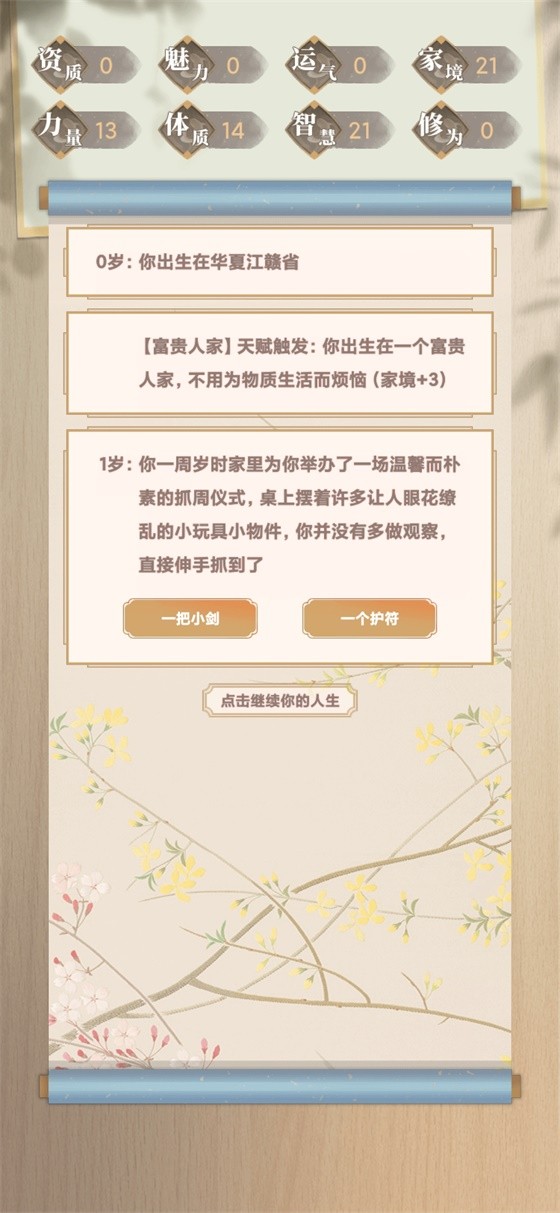 都市修仙模拟器游戏采用时下最流行的文字模拟方法,这款游戏采用现代修仙为题材,您的各个属性决定了自己的天赋,通过随机事件做出选择,不断的轮回重生来改变自己的命运,超多有趣的情节等您来探索发现。