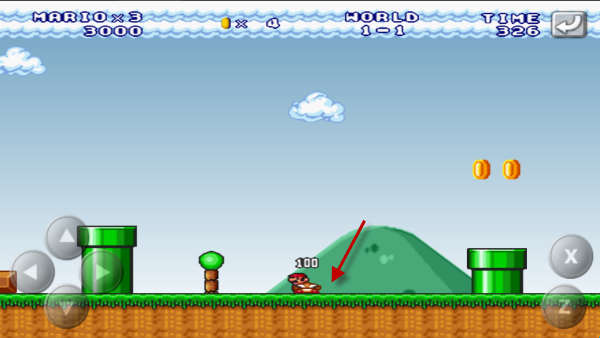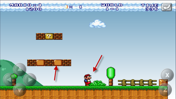 3、玩过马里奥的小伙伴都知道,在初始位置的这个砖块里面会有一个蘑菇,吃了就会变大。