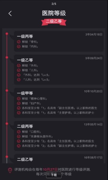3、每个科室都有自己的解锁条件,玩家只有通过升级自己的医院等级才能解锁。