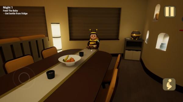 也被称为黄衣婴儿,该游戏采用第一人称3D画风视角,玩家在这里中将成为一名保姆,你需要照顾一个穿着蜜蜂衣服的宝宝,按时给她换尿布和吃食,同时也要在她犯困的时候带她睡觉。然而宝宝有一个习惯,她会偷偷地从你身边溜走,甚至身体有点飘浮。这不是一个普通的孩子,她老有一些奇怪的想法,还喜欢恶作剧。另外游戏的场景和音乐都富含着恐怖元素,随着时间的推进,宝宝的动作也越来越吓人,整个房间也呈现出诡异的变化。