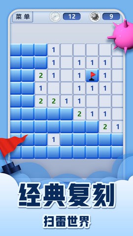 2、经典扫雷游戏,点击屏幕即可揭开格子隐藏的数字或地雷。
