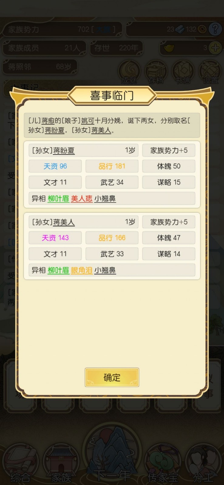 2.通过设置家训、家相特征、能力特征等,打造属于自己的独一无二的家族!