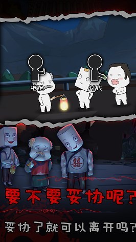 纸盒人将面临选择两个新娘的困境,选择不同的新娘会给纸盒人带来不完全不同的两种人生。或者成年人的选择,如果你全都要会发生什么?快来操控纸盒人的人生吧!紧张的气氛下,你做出的选项总有出人意料的反转剧情出现。游戏中选项决定故事的发展方向和主人公纸盒人的命运。