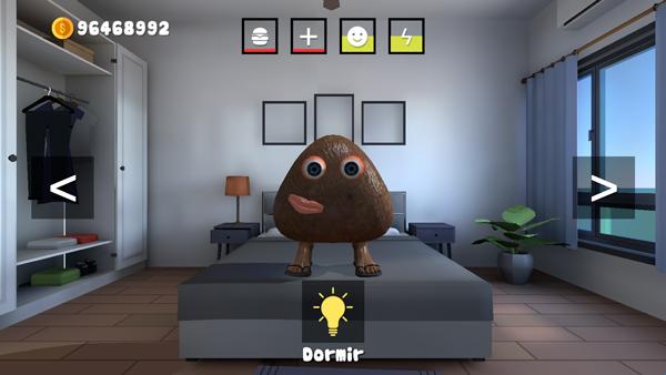1、打开会说话的Peu最新版,游戏内如图,上方显示着它的健康值、饱腹度、心情等;