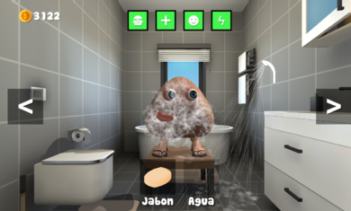 3、点击右侧箭头,玩家可以来到浴室给它涂肥皂洗澡;