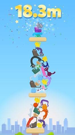 考验玩家耐心和技巧的休闲解谜类小游戏,令人越玩越上瘾。在游戏中,玩家只需要将一个个小猫慢慢的在下面的台上一一叠起来,只要保持小猫在台上不掉下去,你就赢了。
