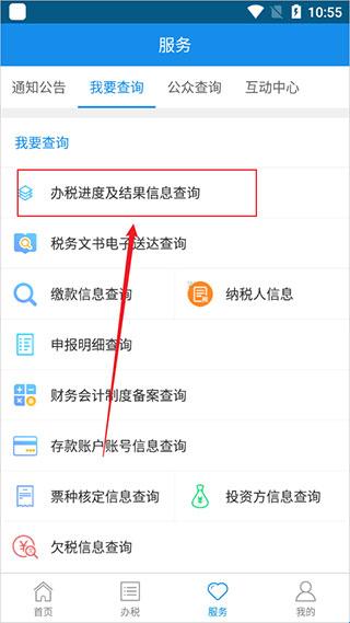 3、在【我要查询】下方点击【办税进度及结果信息查询】。