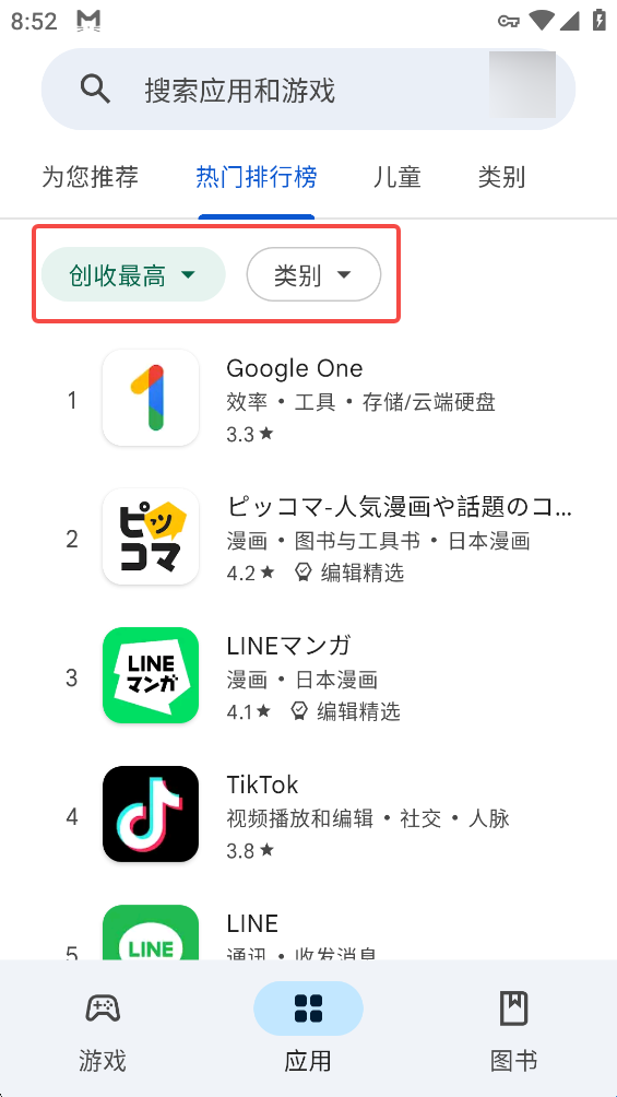 2、在应用中点击热门排行榜可以查看近期热门的应用,能够进行筛选。