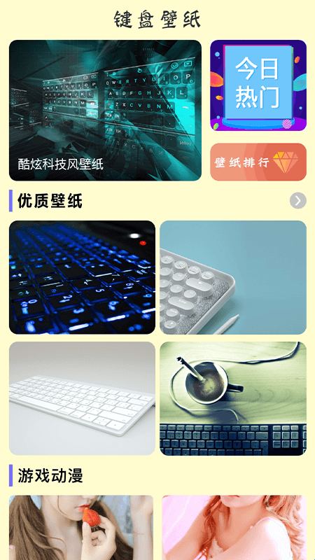 键盘壁纸是一款非常不错的手机键盘美化工具,每日提供海量优质壁纸内容,用户可以根据个人喜好进行挑选收藏或者下载,使用之前先预览,使用之后壁纸非常自然地贴合手机屏幕,高清的画质才配的上你。用户还可以通过社交软件将壁纸分享给好友,可以跟好友一起使用壁纸,壁纸都是没有水印的,免费下载使用,有需要的用户可以下载试试看!