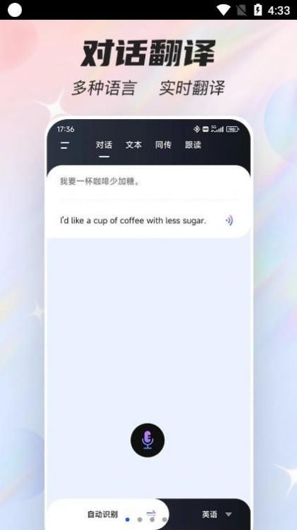 1、实时翻译功能,支持多种语言的文本和语音输入。